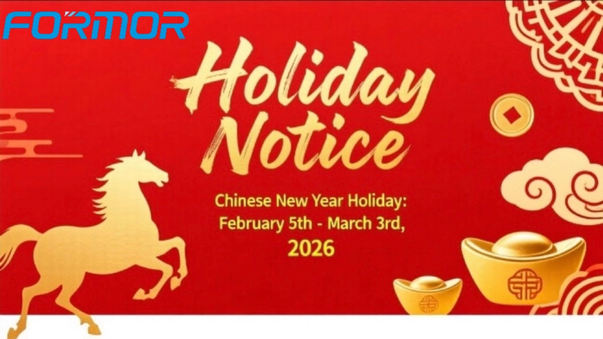 Чтобы наши преданные сотрудники могли отпраздновать Праздник весны со своими семьями и встретить Новый год с новыми силами, наша компания будет соблюдать праздничный период с